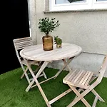 The kitchen amenities feature tea and coffee making equipment, a stovetop, and kitchenware, provided in an outdoor dining area. Santiago de Compostela airport is 85 km away from the Muxia property.